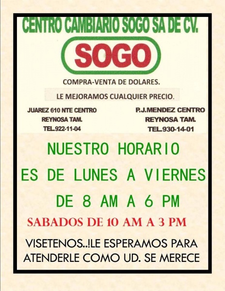 CENTRO CAMBIARIO SOGO SA de CV